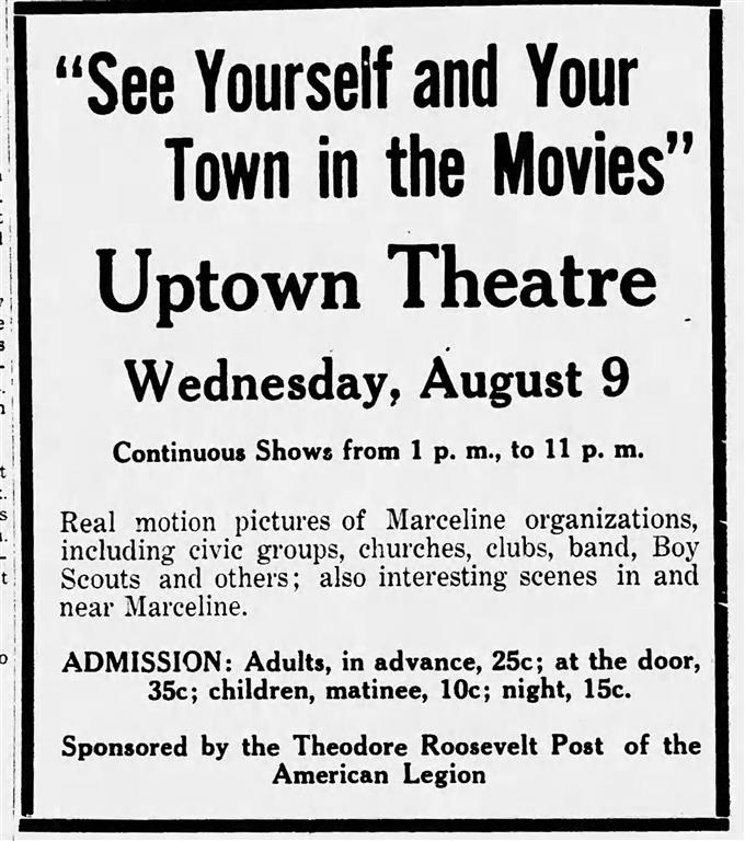 Motion Pictures of Marceline Will Be Shown August 9th and 10th at Uptown