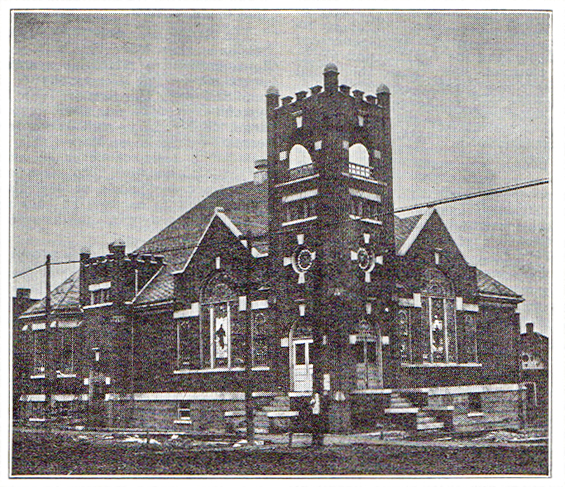 All lines of business were flourishing by midsummer of 1888, and as the people looked forward to prosperity and commercial progress they turned their attention to the building of substantial homes, churches and schools. During the first six months of the town’s existence the two branches of the Methodist Church, the Church of the Disciples, the Baptists, the Catholics and the Cumberland Presbyterians had organized congregations. All the Protestant denominations met for worship in Crumley’s Hall, on Gracia avenue, and the Catholic congregation held their services in Senrick’s Hall on Lake street. J. W. W. Waugh was the first pastor of the church of the Disciples. W. Toole was the first pastor in charge of the Southern Methodist organization, while J. E. Rutledge directed the destiny of the earliest congregation of the First M. E. Church. These two branches of the Methodist faith maintained a separate existence in the town until the year of 1908, when the two congregations were merged into one and the splendid, modern church edifice at the corner of Kansas and Santa Fe avenues, with its many endearing and ornamental fixtures, is the result of that merger.