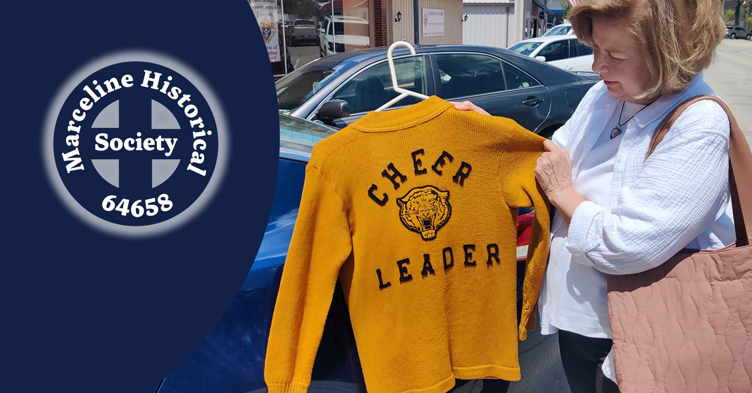 In the photos below, Reve’s daughter, Brenna Williams, shows her mother’s cheerleader sweater during her visit to Marceline on July 18, 2024.